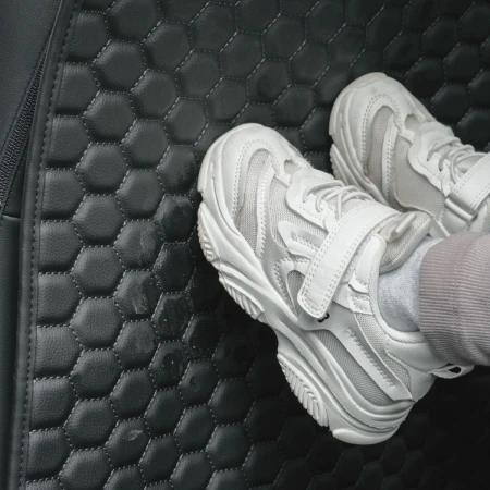 Featuring a sophisticated solid black color with a hexagonal pattern, our seat back protector fits seamlessly into any car interior. It not only guards your seat upholstery against dirt and shoe marks but also adds a touch of style.