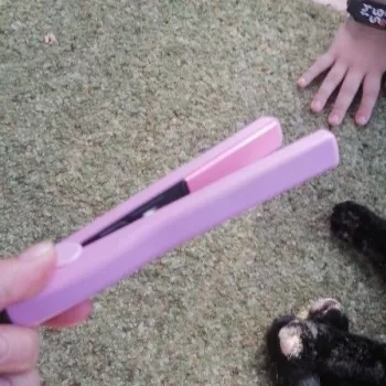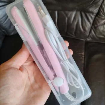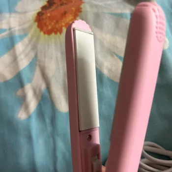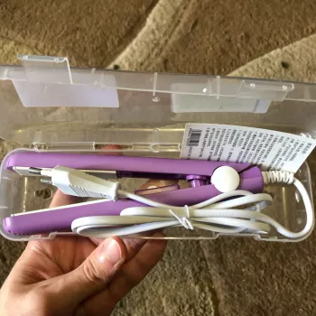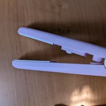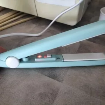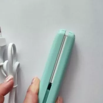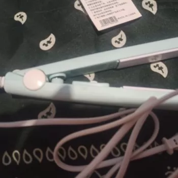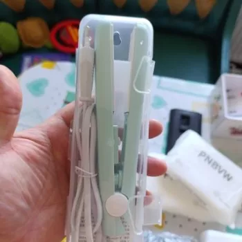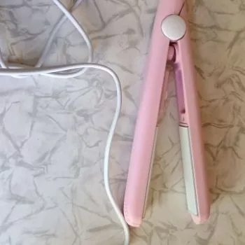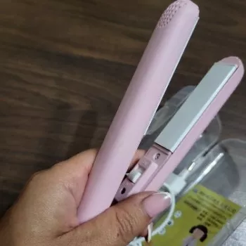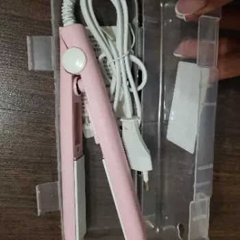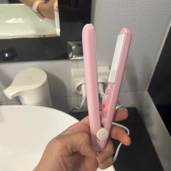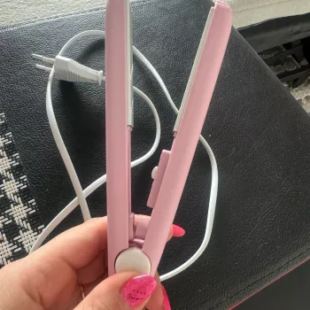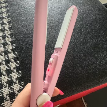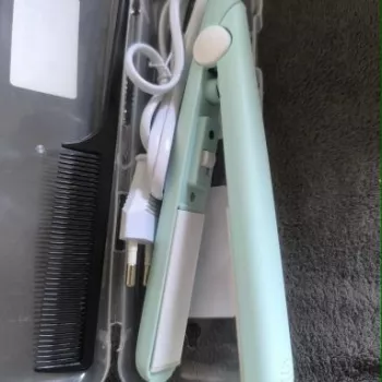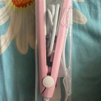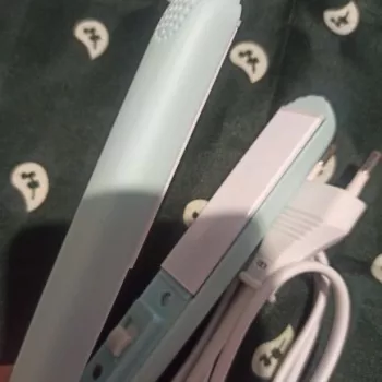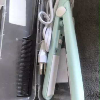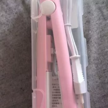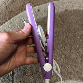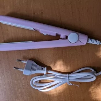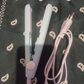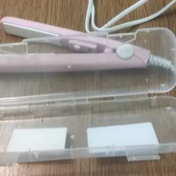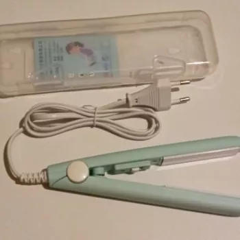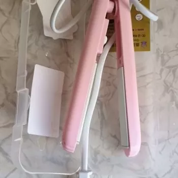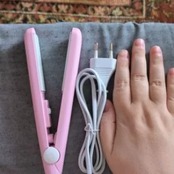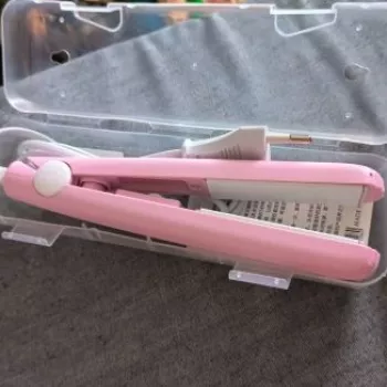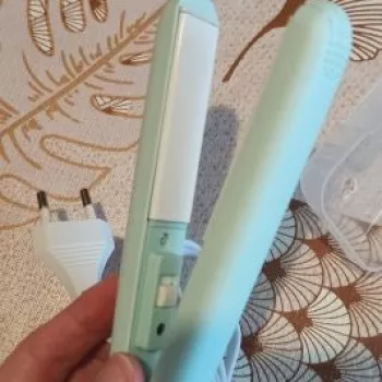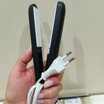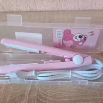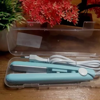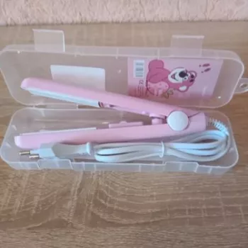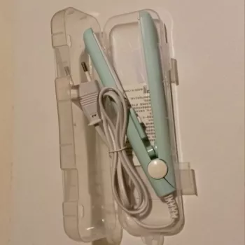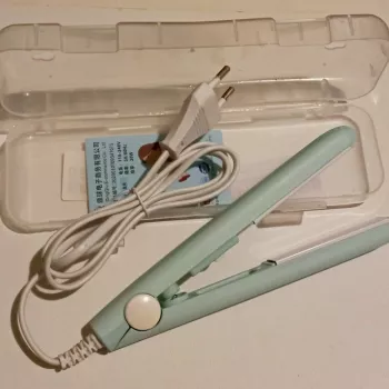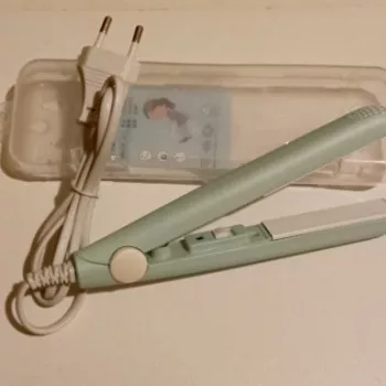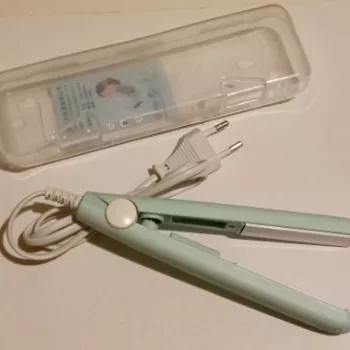 Mini hair straightener. Compact, convenient to take with you, even fit in a small handbag. Always can be carried with you has a small weight, convenient to use, hot quickly. With the help of this mini curling iron, you can quickly fix your hair if suddenly you are caught in the rain. Very happy with this purchase.