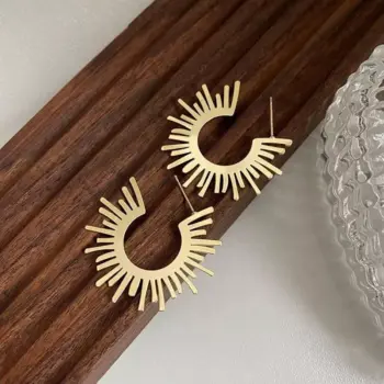18K PVD Plated Honeycomb Shaped Ear Clips