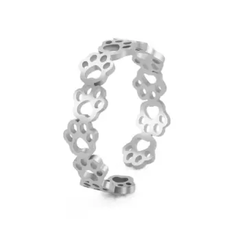 Adjustable Stainless Steel Cat Paw Ring – Trendy Animal Print Finger Jewelry for Women