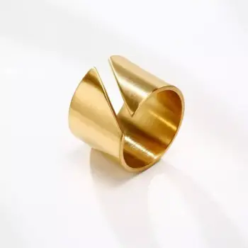 Gold Color Geometric Stainless Steel Wedding Bands, 15mm Wide Fashionable Cocktail Rings