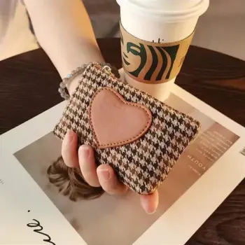 Retro Heart Houndstooth Mini Coin Purse