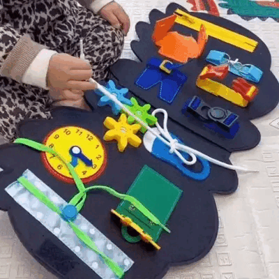 This toy has been a fabulous addition to our home! It's helped my child improve their hand-eye coordination and fine skills. 👍My toddler can't get enough of this board. She loves the activities like tying shoelaces and snapping buttons. A great buy!