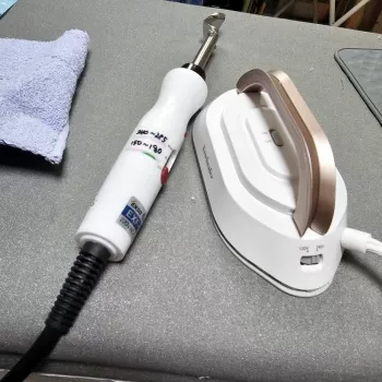 Super tourist iron, handy, warms well. Pad and washer Super idea. I recommend it