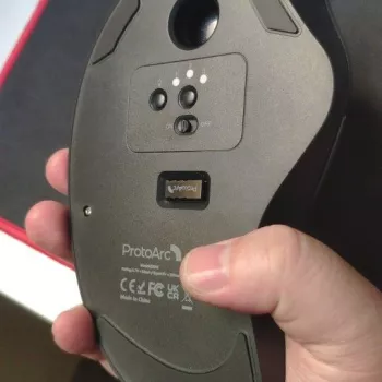 Very good mouse, nice and pleasant to use. In the end I naturally turn the ball with the 3 middle fingers and without any problem, I got used to it very quickly. I had been using a vertical mouse for 10 years, I would have liked it to be a little plus vertical to avoid the torsion of the forearm. After 10 days of use my arm got used to it. The battery is still at 100% despite daily use. Use with dongle USB or bluetooth, can connect to 3 devices so very convenient for desk and TV box in the bed. Supplied with a very long USB-C charging cable (cable supporting slow charging only). I am happy with my purchase.